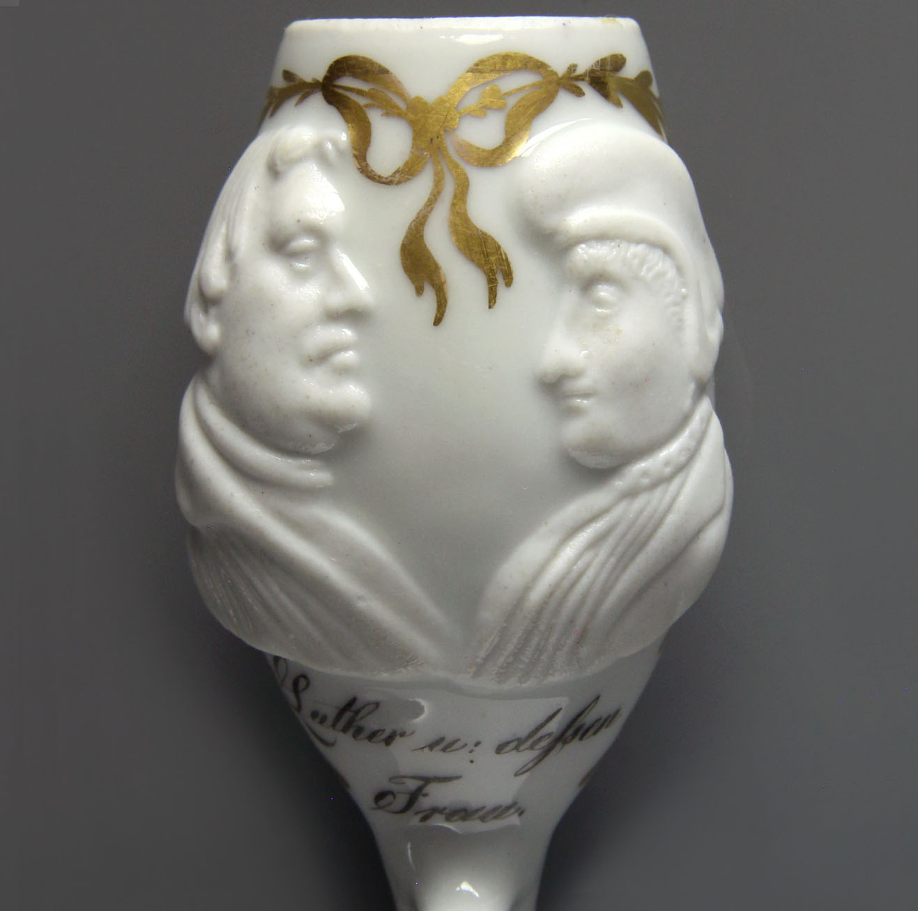 Objects from the collection of the Amsterdam Pipe Museum end up in the most unexpected museums. Take the Luther Museum, for example, which assembled an exhibition about the wife of Martin Luther, the German church reformer. By chance there is a porcelain pipe with portraits of Luther und seinen Frau as written underneath, in our collection. It is on loan now and will be displayed in the exhibition of our colleagues during the coming months.